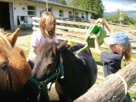 Auf unsere kleinen Reiter warten Blümchen und Tommi zum Reiten, Putzen, Schmusen...