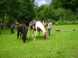 Pferdes erleben. Trekking mit dem Pferd - dabei teilen sich zwei Menschen ein Pferd: einer führt, einer reitet - jeweils abwechselnd. Es ist ein besonderes Abenteuer für Familien mit Kindern, die gerne längere Wanderungen unternehmen. So können auch Kinder die Strecken problemlos bewältigen und Spaß macht`s obendrein.